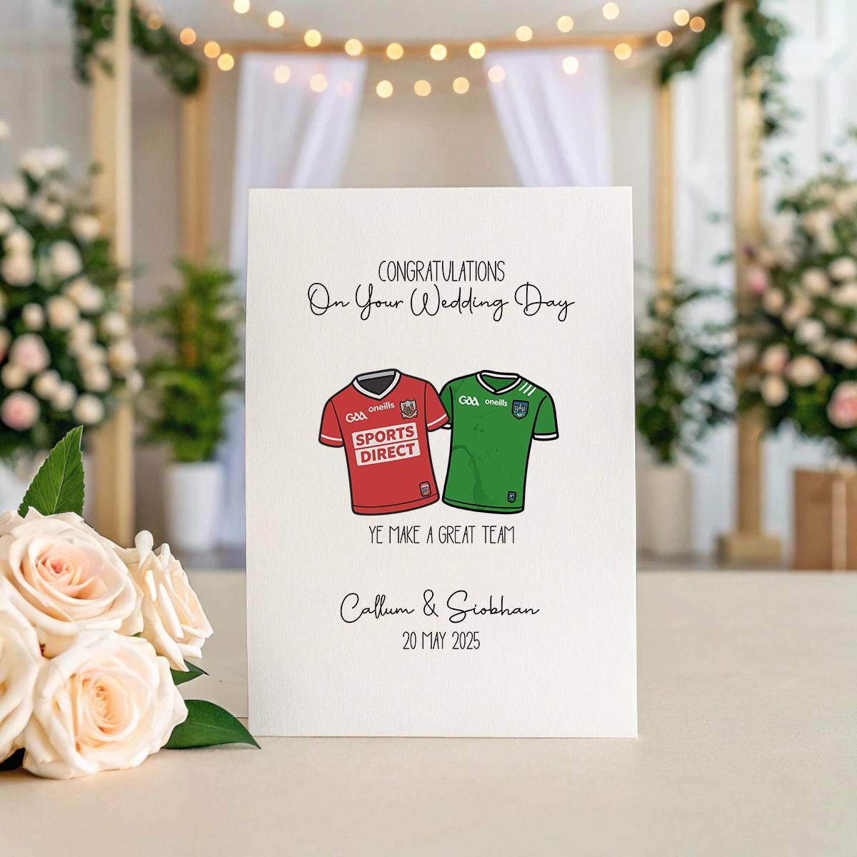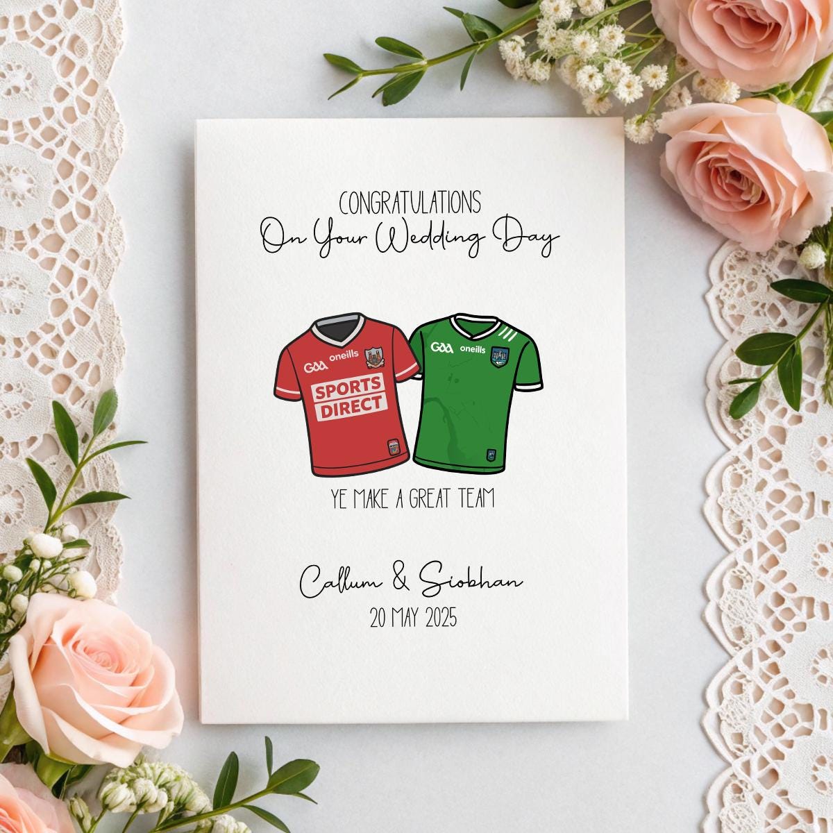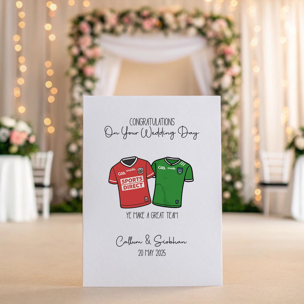 Personalised GAA Wedding Card – Pick 2 Irish Counties, Names & Date, Ye Make a Great Team